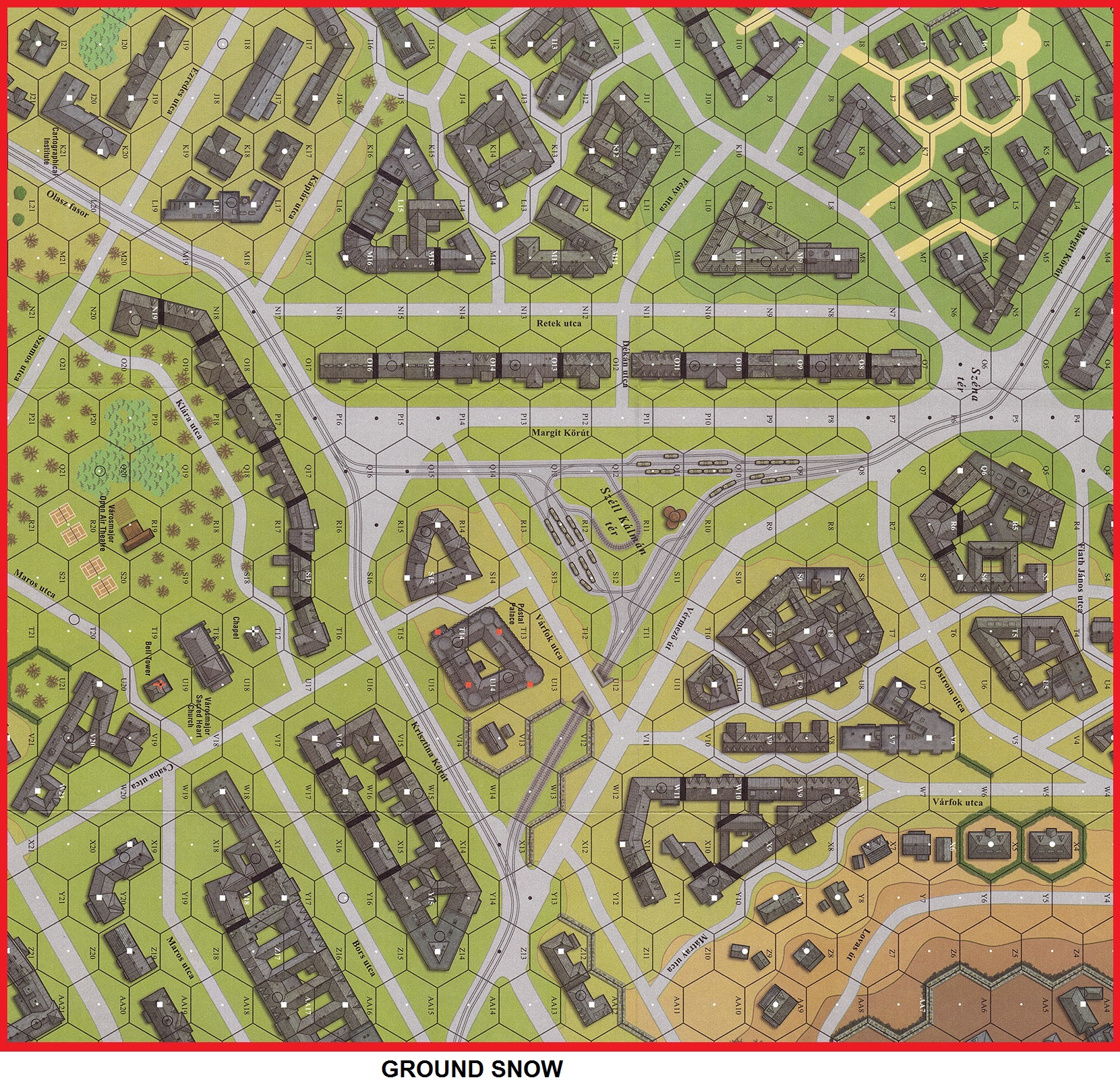 A really boring defense, as there's no way the Hungarians can stand up to the Russians in a straight-up fight. I had placed about half my force in the Postal Palace, and this proved to be way too much as the Russians almost completely ignored it - sending only their Volunteers to keep me honest. Their 9-2 kill stack in the upper levels of L17 also prevented me from shifting my force. So I was stuck sitting on my hands in the long rowhouse, while my speedbumps in the northern rowhouse tried to hold out as long as possible (which wasn't long). It didn't help when a tank removed a key wire counter over there, but I got lucky and fried him with a faust. Meanwhile another approaching tank got zapped by SSR6 when one of my arties nailed its turret, while another bogged on wire (eventually miring and immobilizing). That left one mobile tank, and I would've had him haul tail to avoid an immediate Hungarian victory, but my opponent felt much less certain about his chances than I did and had it continue the fight. Boy Soldier blew a great shot and immediately lost his MMG; at least his berserk charge led to taking out a 458 in HtH before his demise. Hungarians were starting to bleed precious bodies as the Russians solidified their northern push, but they continued the boring task of blocking the way with bodies as best they could. OBA had yet to drop as there were limited LOS with all the buildings and concealed Russians. It would prove instrumental in the end. After five turns the Russians had grabbed half the long rowhouse, but were on the doorstep and close to assaulting the last five hexes. My crew on that side was broken by 9-2 and company, but the last tank bogged trying to clear a roadblock. The 8-1, 2 AEs (one fanatic), and a 237 all were turned berserk in their charge across the street to the rowhouse, and this would've made for an interesting finish except for the fact that OBA shocked, then immobilized, the last remaining tank - providing the Hungarians with a hollow-feeling victory.