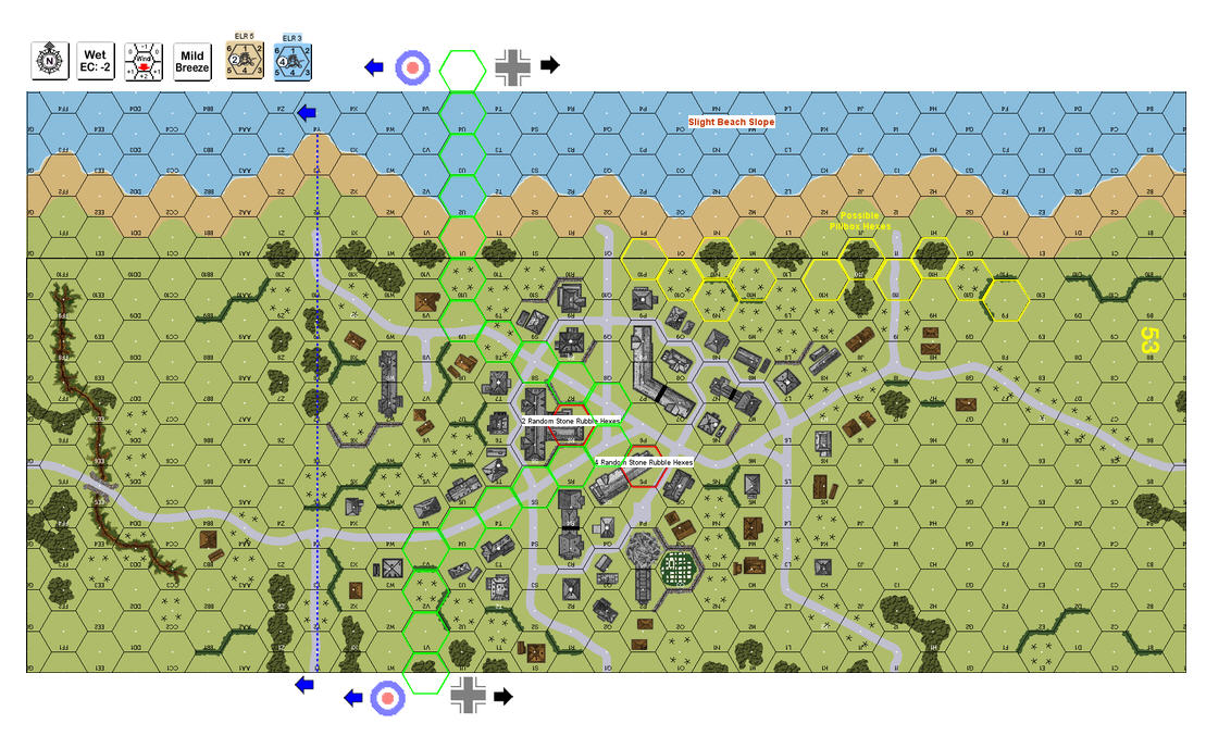 | Misc Rules: | All roads are paved. A: Variable armor (2Sherman/1AVRE or 1Sherman/2AVRE) |
