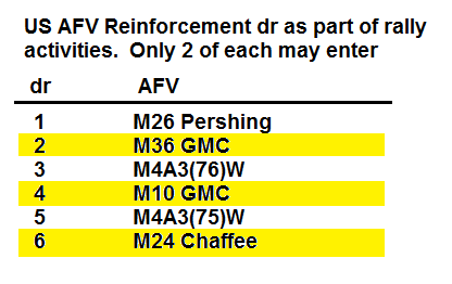 | AFVs: A:8 M3 ht x 5 M3A1 ht x 2 M3(MMG) |