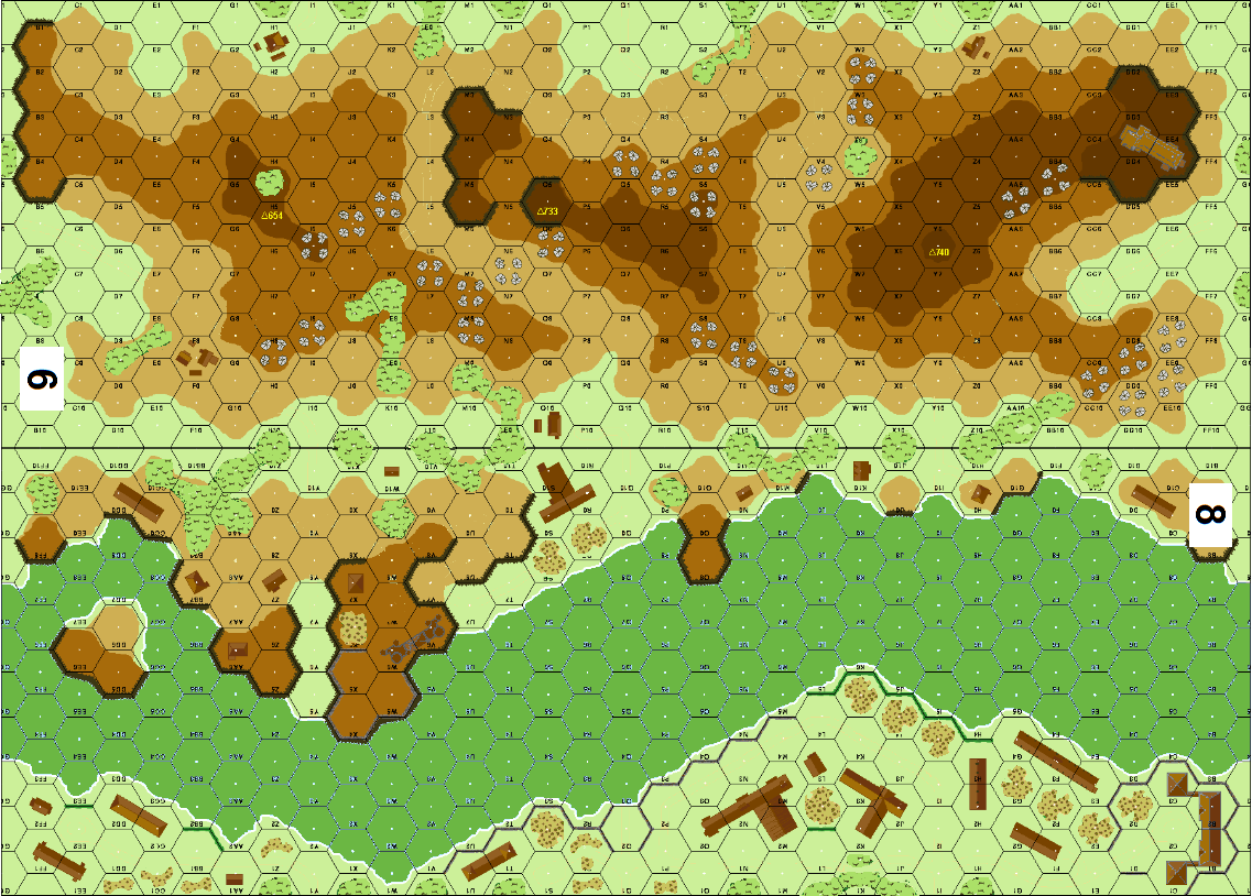 | Misc Rules: | Woods/Marsh: Brush, River: Dry, Valley, Bldgs: Wooden, Single Story |