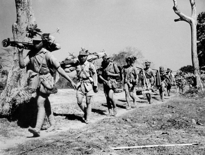 Chinese troops moving to the ill-defined frontline near Toungoo