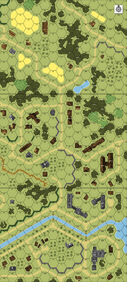 Dan set up a great defense. His well-placed pillbox with his 10-1, a crew, and the .50cal caused me no end of pain! My aircraft did destroy his INF Gun, but did very little else. My radio-directed OBA got one fire mission that did little. My aerial observer-directed OBA did get two fire missions that caused some damage, but not much, and - bonus (!) - I did get attacked by a mistaken attack/OBA fire mission for that module (sigh). My 9-2, two HMGs, and a MMG got into position to attack Dan's pesky pillbox, but did not get a result with two 14+3 shots. Dan fired back at 8+1 and broke my entire stack (including ELRing two of the squads, casualty-reducing one of them; ouch). My 9-2 would not rally for two complete turns (!!) and then roll a "12" to wound himself; a complete disaster. I did finally capture the early-VC building, but too late. I also was able to get into CC with the 10-1 and crew in the pillbox and finally put an end to them. After that ordeal, three of my leaders were wounded (two by Dan's sniper) and I just did not have enough oompf left (to include leader MF bonuses) to get over the canal and capture the required buildings. If I only had one more turn... ;-) Good job by Dan. Fun scenario. I'd play it again.
