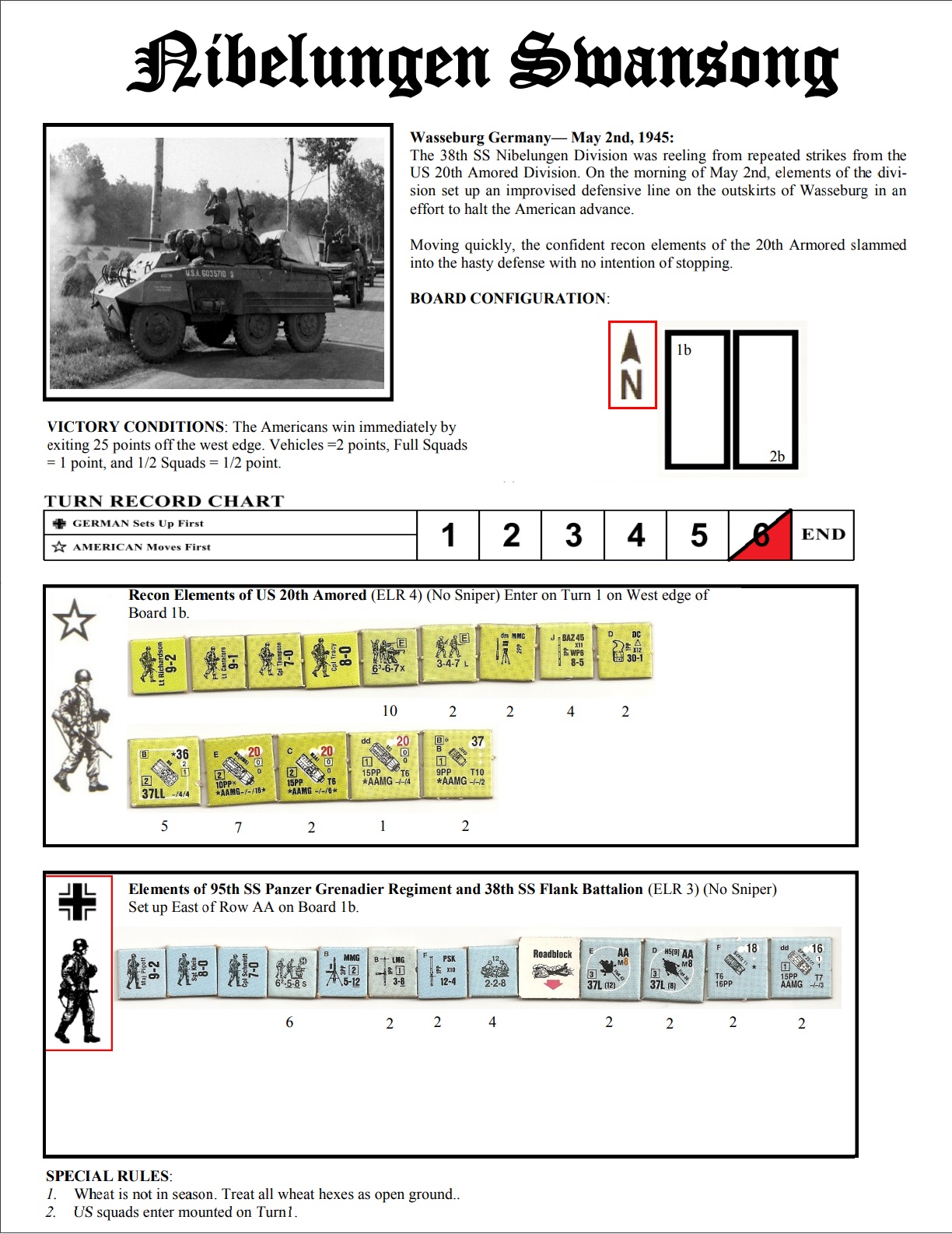 The 38th SS Nibelungen Division was reeling from repeated strikes from the U.S. 20th Amored Division. On the morning of May 2nd, elements of the division set up an improvised defensive line on the outskirts of Wasseburg in an effort to halt the American advance. Moving quickly, the confident recon elements of the 20th Armored slammed into the hasty defense with no intention of stopping.Attacker: American (20th Armored Division)