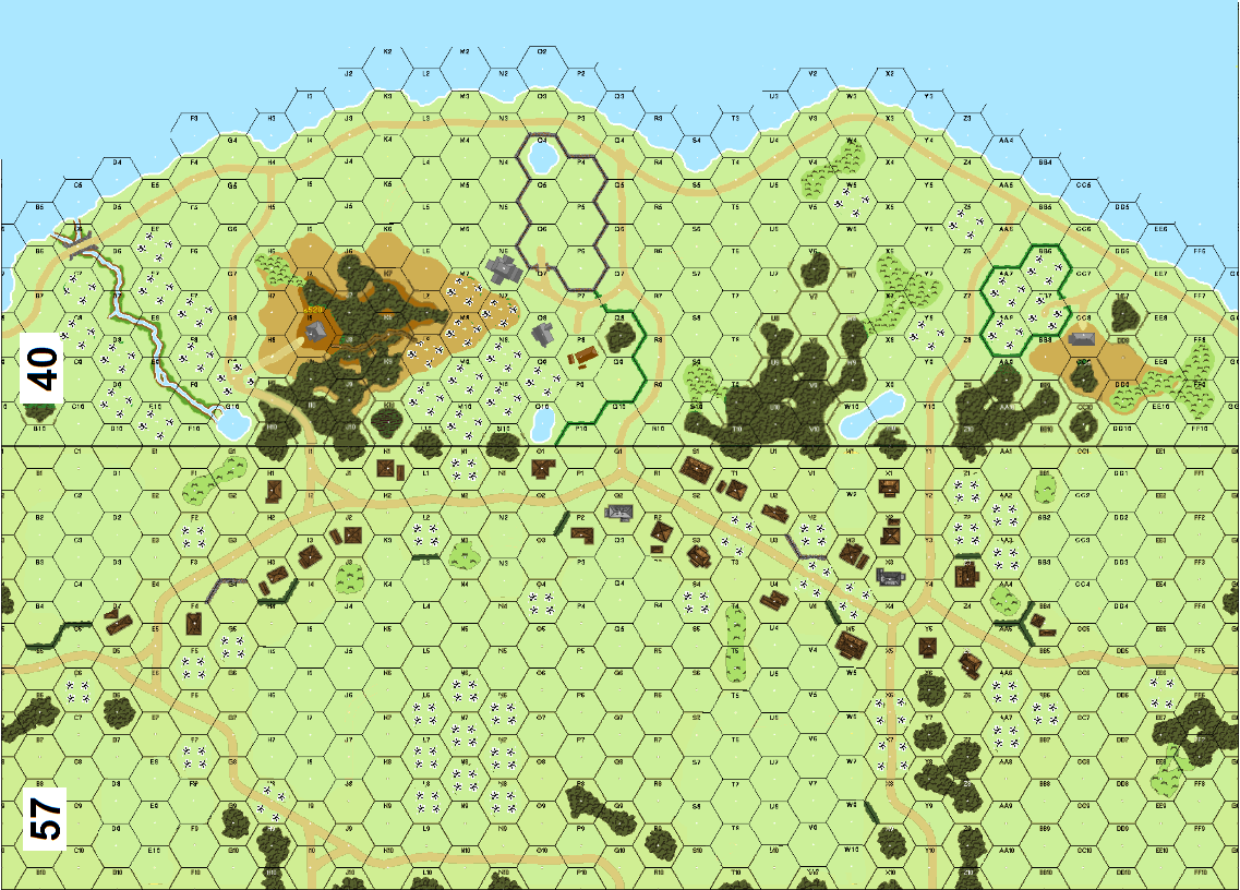 For days, a roving cauldron of German troops and Prussian refugees had been attempting to escape the oncoming Russians and be evacuated by sea. Led by Hans von Tettau, elements of Panzer Divisions Holstein and Pommern were driving hard to open an escape route. Only scattered Russian infantry units stood between Tettau and freedom.Attacker: German (Refugees, Pz Div Pommerania and Pz Div Holstien)