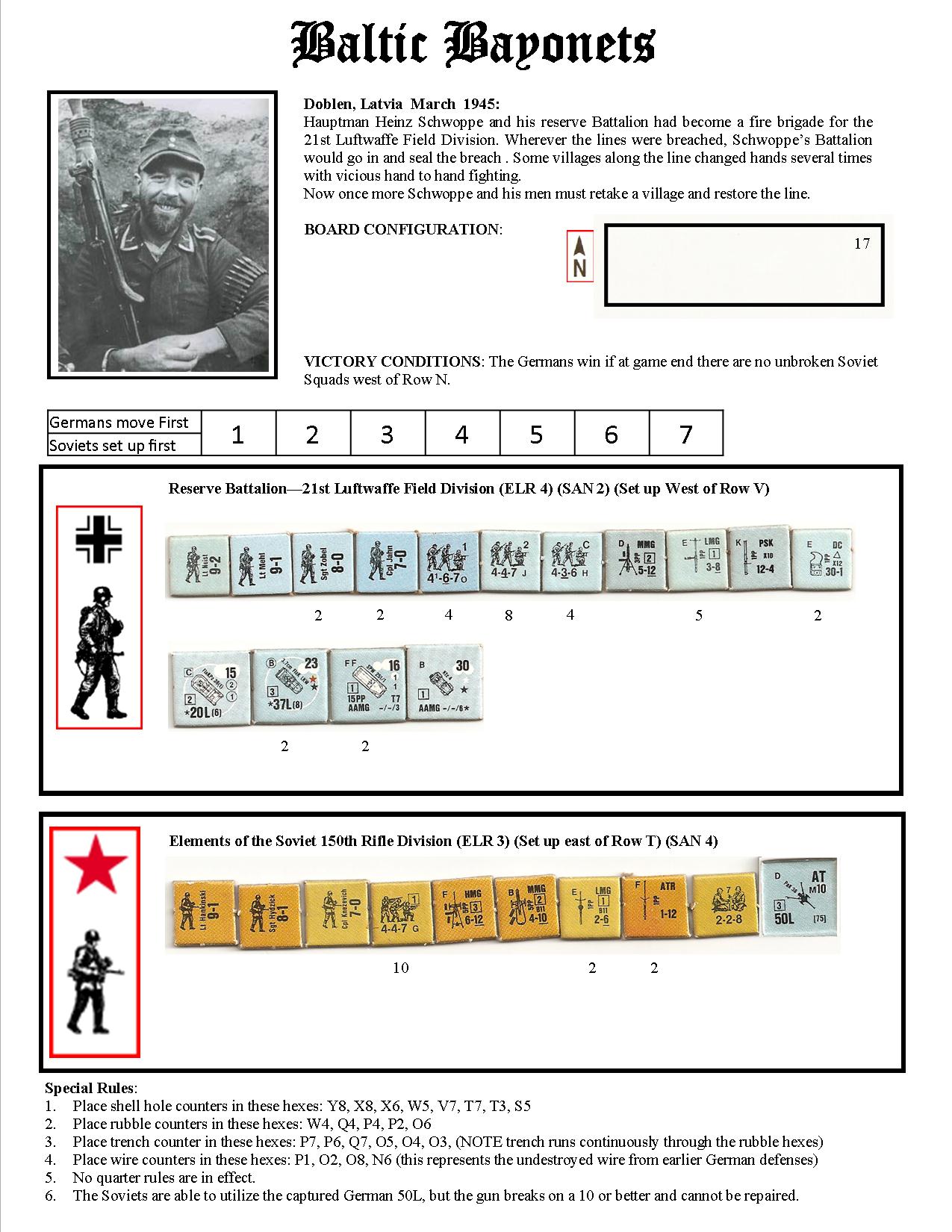 | Misc Rules: | No Quarter. D: Captured German AT gun breaks on roll of 10 or higher, cannot be repaired. |