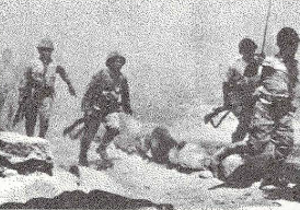The Japanese 3rd, 9th and 101st Divisions were attempting to cross Wusong Creek to establish a line approximately 800 meters south of the creek. Chinese Colonel Yan Yinggao was observing the developing action from his reserve position as the Japanese attacked the 3rd Battalion, surrounding Chinese forces in Tangheizhai. Just as the Japanese were encircling the village, Yan received orders to reinforce the 3rd Battalion. On the march, Yan observed sixty Japanese troops in a column formation that was advancing on Tangheizhai. From the village, a few stouthearted Chinese soldiers mad a desperate last stand.Attacker: Japanese (Elements 101st Division)