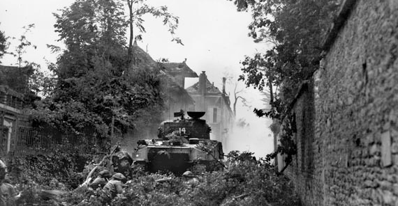 The Highland’s B Company fought to secure the western half of the town, while D Company struggle to secure the eastern half; and by late morning, both lead companies had suffered heavy casualties, but had managed to gain a foothold in the village. C Company then moved forward between the two-lead assault companies, assaulting the village and pressing the Canadians' attack...Attacker: Canadian (C Company, Highland Light Infantry and A Squadron, Sherbrooke Fusiliers)