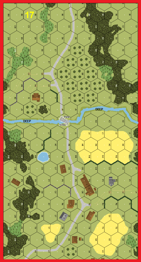 | Misc Rules: | Mud in effect. Stream is Deep - AFVs can only cross at Ford |