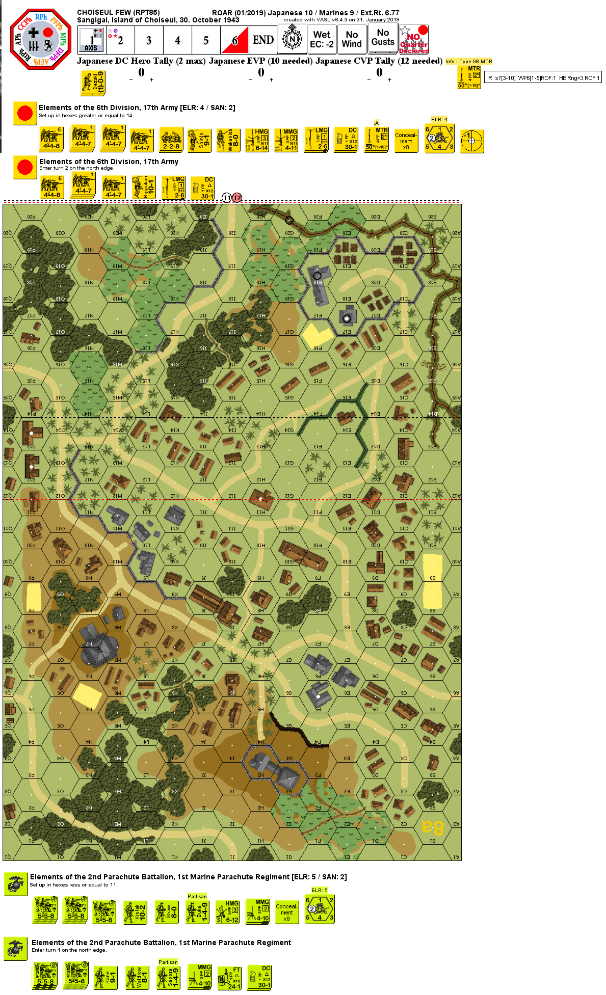 | Misc Rules: | PTO, LJ (Exc: roads exists, brush remains brush). D: 5-5-8s are Paramarines (G17.111) |