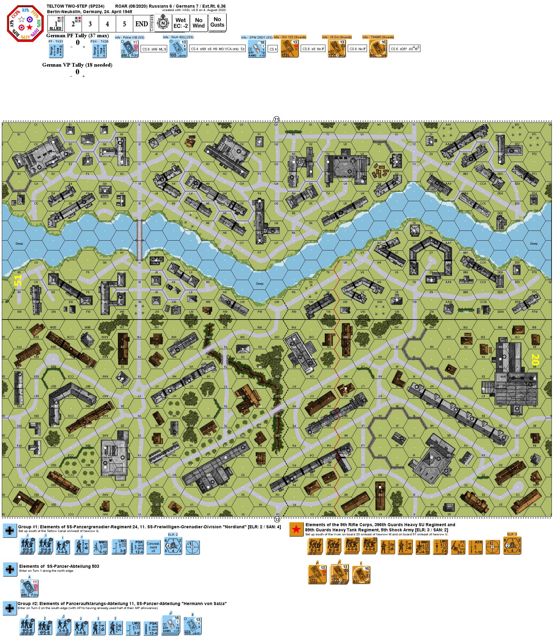 The Soviet 9th Rifle Corps had crossed the Spree River and was attacking into the heart of Berlin. Simultaneously, elements of Aufklarungs Abteilung 11 were withdrawing northward from Britz, across the Teltow Canal toward Neukolln. Stalin tanks from the 89th Guards Heavy Tank Regiment were attempting to seize the bridge to cut the German escape route.Attacker: Russian (Elements 9th Rifle Corps, 396th Guards Heavy SU Regt. & 89th Guards Heavy Tank Regt., 5th Shock Army)