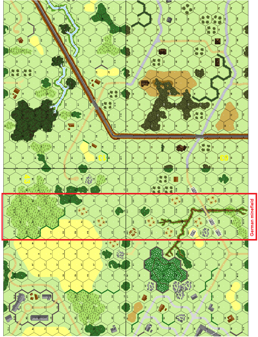 | Misc Rules: | A: Barfoot (1-4-9) is Fanatic, immune to mines, has Bazooka. |