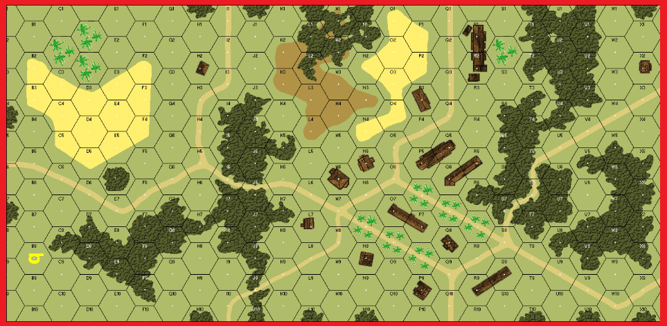 | The play area is as indicated by the text, not the map image depiction. The Commonwealth 4-3-6 counter image should have a G on it to indicate Green units, not a C. | Jagersoft website |