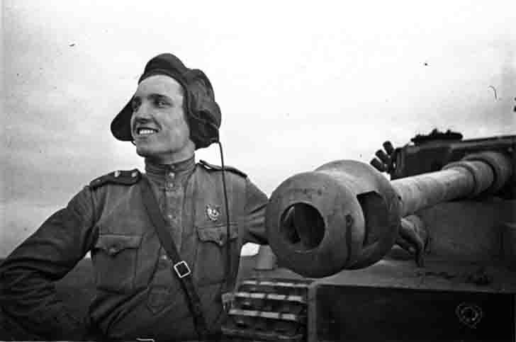 Senior Lieutenant Ivan Shevtsov next to the killed German tank "Tiger".