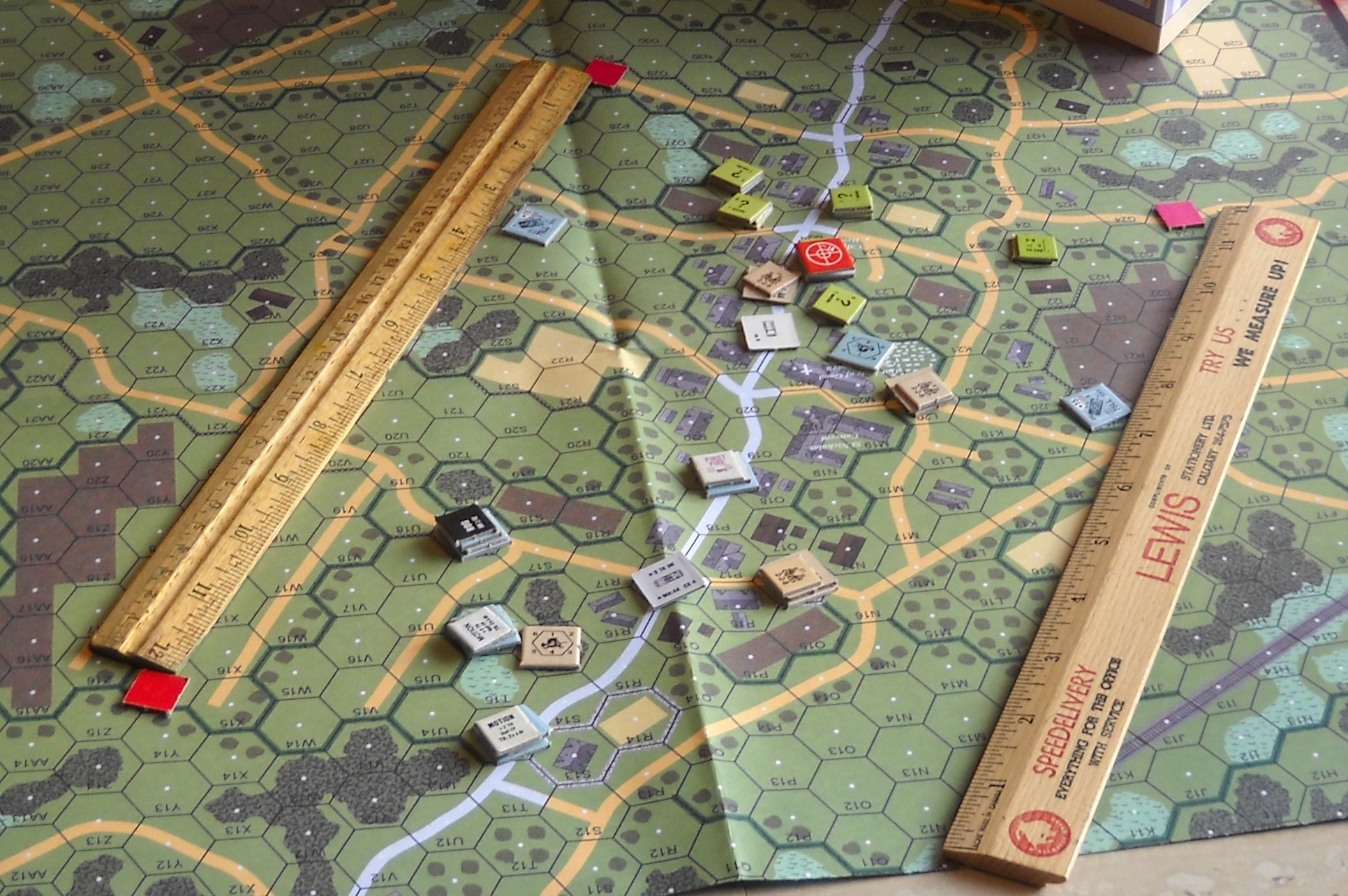 Playing area marked out with rulers.