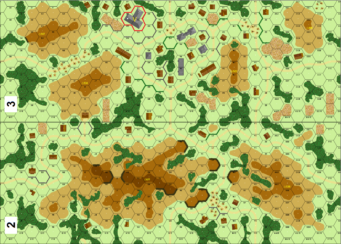 | Misc Rules: | Castle (3N2) is FB, +4 TEM. A: has sniper, 2 roadblocks Bd 2 |