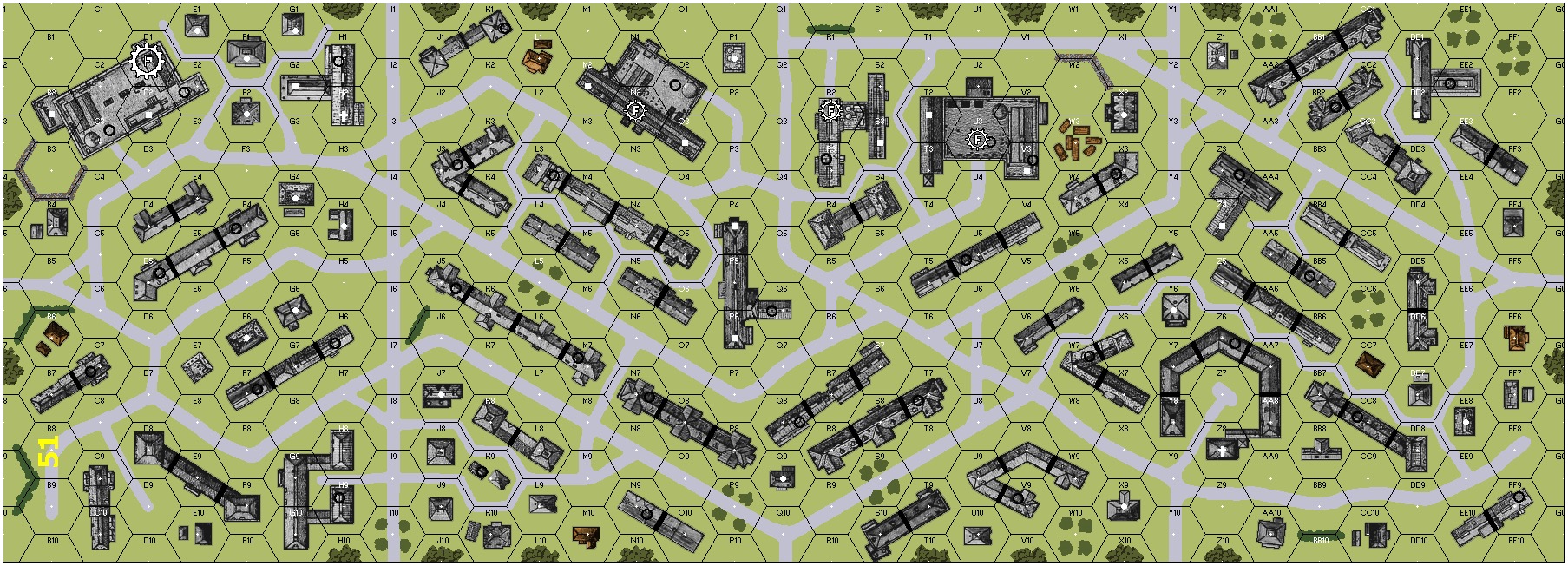 | Misc Rules: | Bldgs D1,N2,R2,U3 are Factories (B23.74). A: Sewer Movement (B8) |