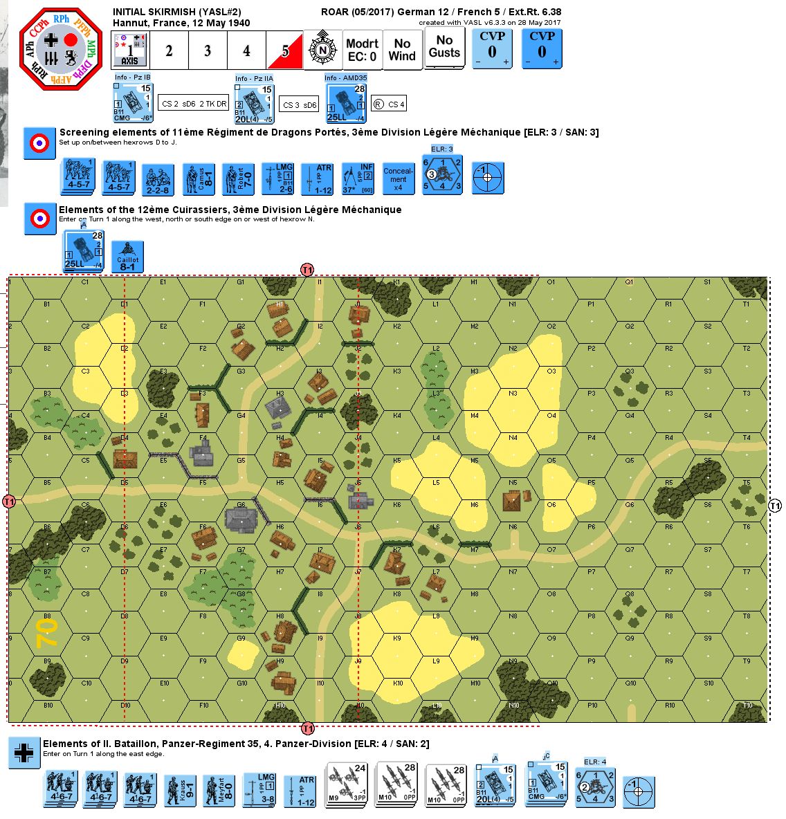 | AFVs: A:5 PzKpfw IIA x 2 PzKpfw IB x 3 Motorcycle w/Sidecar x 3 Motorcycle x 5 |
