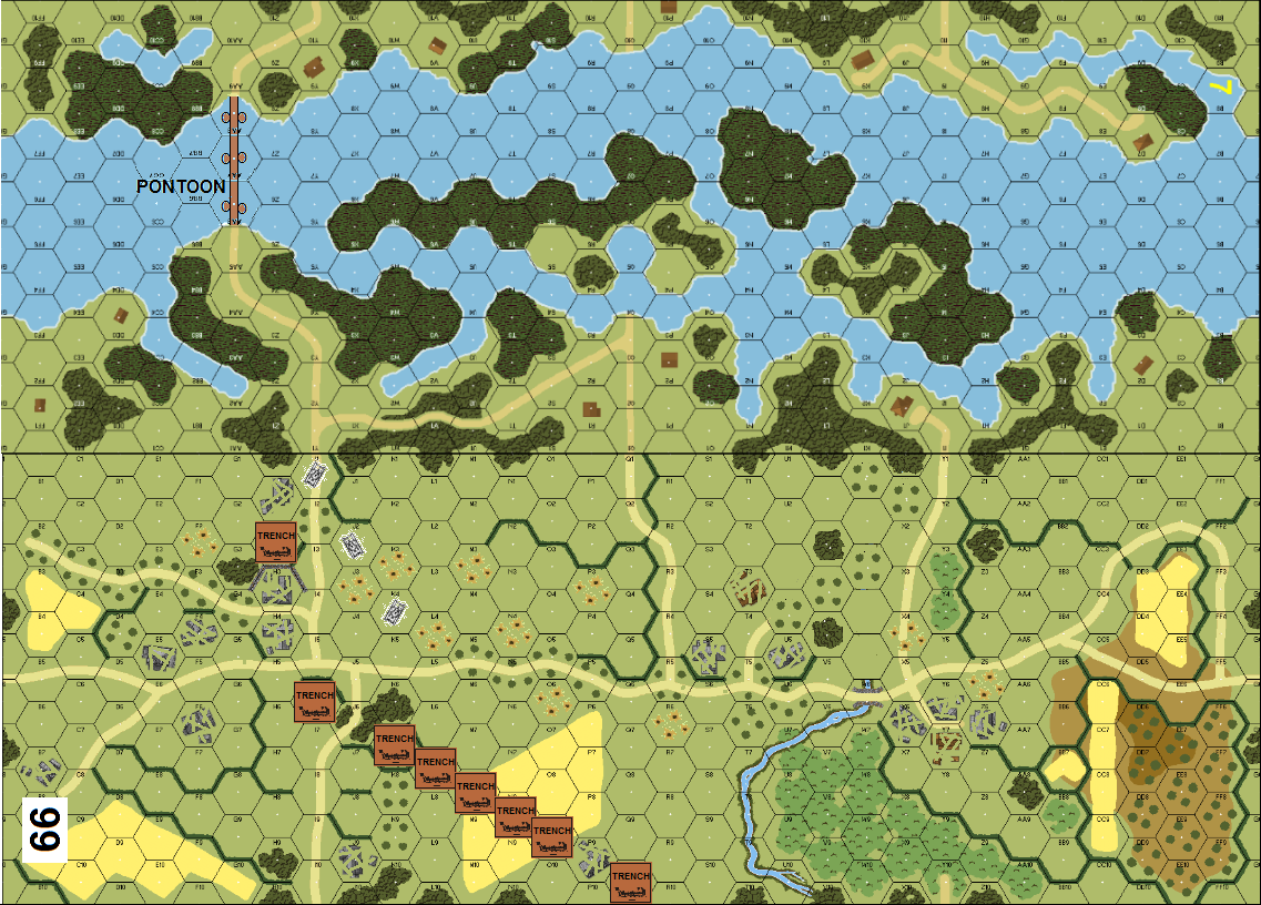 | Misc Rules: | Hedges: Bocage, NQ: N/A. D: Secret die roll for US relief entry (5 AFVs) |