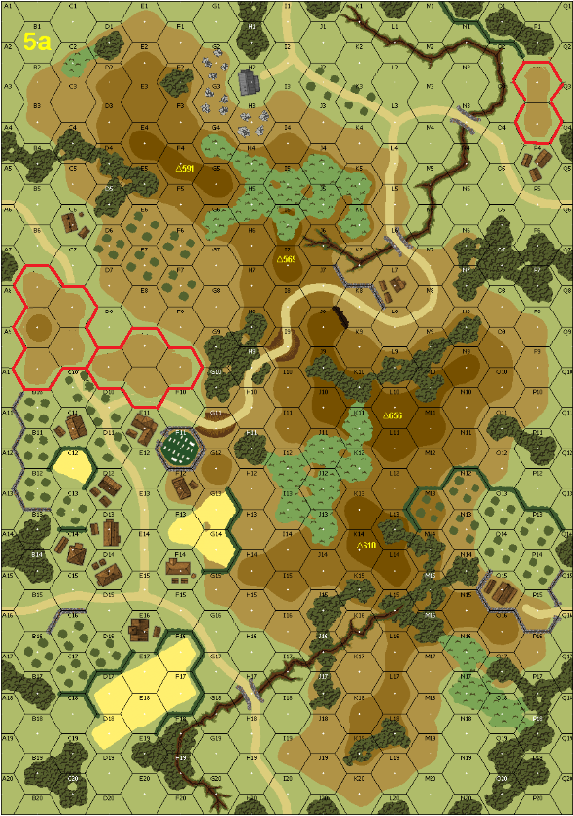 | Misc Rules: | Desert Terrain. Woods: Brush, Orchards: Crags, Roads and Gullies: Wadis (F5). |