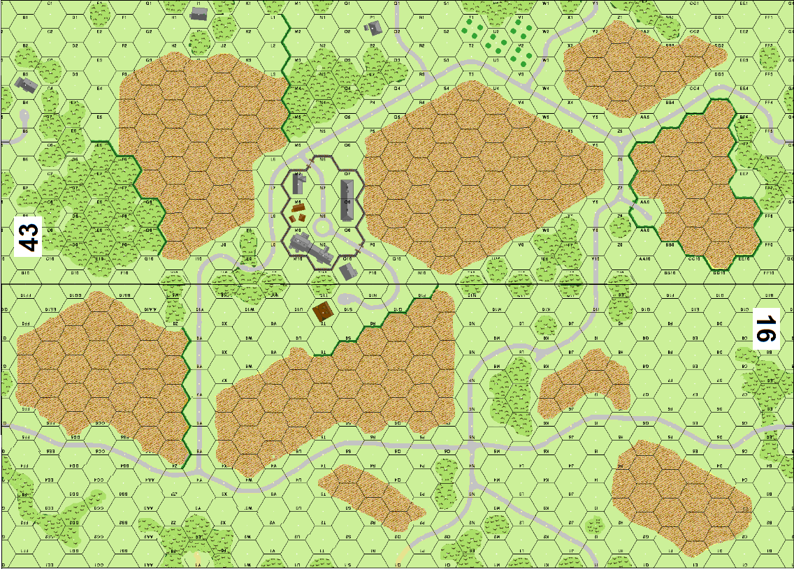| Misc Rules: | Treat Woods as Brush. Paved Rds. Plowed Ground like Mud for AFVs |