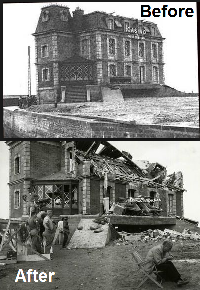 No. 4 Commando was ready to star in the breakout towards Ouistreham from the landing at Sword Beach. Leading them was the tough but well-tailored Groupe Francaise, who brushed aside German strongpoints on the outskirts of the resort town. They pressed on quickly to their main objective, the casino building which dominated the seafront area. Since the Wehrmacht defenders had given up playing roulette there, they had been able to turn the structure into a mini-fortress, resulting in the first French assault being bloodily repulsed. New motivation arrived in the form of British armor support. The clank of tracks on cobblestones and the slam of the tank's main gun soon stirred the French blood, so the attack resumed in full fury.Attacker: Free French / British (Groupe Francaise, No.4 Commando and reinforcement from British 27 Armoured Brigade)