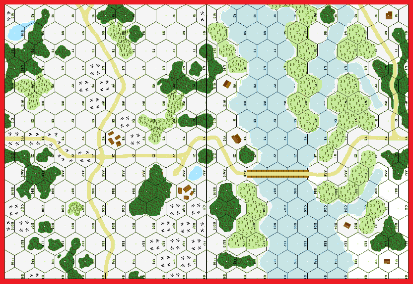 | Misc Rules: | GS (E3.72), FS (E3.71). Marsh: Brush. Starting Turn 3, dr for bridge demolition. |