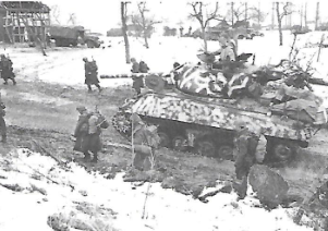 A breakthrough in the village of Hatten became the key focus of the German offensive codenamed Operation NORDWIND. By early afternoon of 9 January, units from Panzergrenadier-Division 25 had captured most of Hatten. The Americans responded immediately, seeking to retain a toehold in the village and prevent the encirclement of its defenders. To determine the forces needed for the task, Captain Joey Ory, aka “Captain Ace”, a company commander from the 14th Armored Division, made his way to the command post of the infantry defending Hatten. The presence of a large force of German armor made the decision easy; more American tanks and infantry were required. The Americans committed a further full battalion from the 242nd Infantry Regiment, and deployed Ory’s A Company, 48th Tank Battalion to counterattack Germans in the western and southern portions of Hatten.Attacker: American (G Company, 242nd Infantry Regiment, 42nd Infantry Division and 1st Platoon, A Company, 48th Tank Battalion, 14th Armored Division)