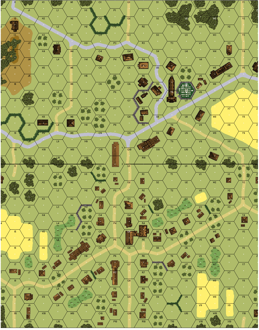 | Misc Rules: | Night (E1), Bldgs: Wooden, single story. A: AFV radioless, recall NA |