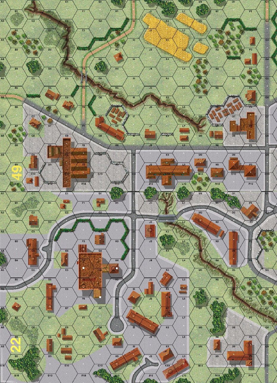 | Misc Rules: | Stream is Dry, all buildings are Wooden. AFV crews may not voluntarily Abandon |