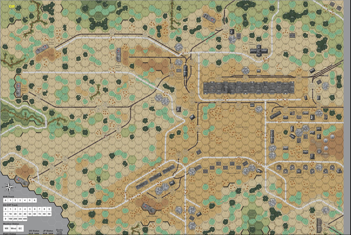 | Guns: A:3 M1A1 75mm Pack Howitzer x 2 D:2 M3A1 37mm AT Gun M2 60mm Mortar x 6 Type 96 25mm AA Gun Twin-Mount x 2 Type 1 Machine-Moved Gun Type 89 Heavy Grenade-Launcher x 9 |