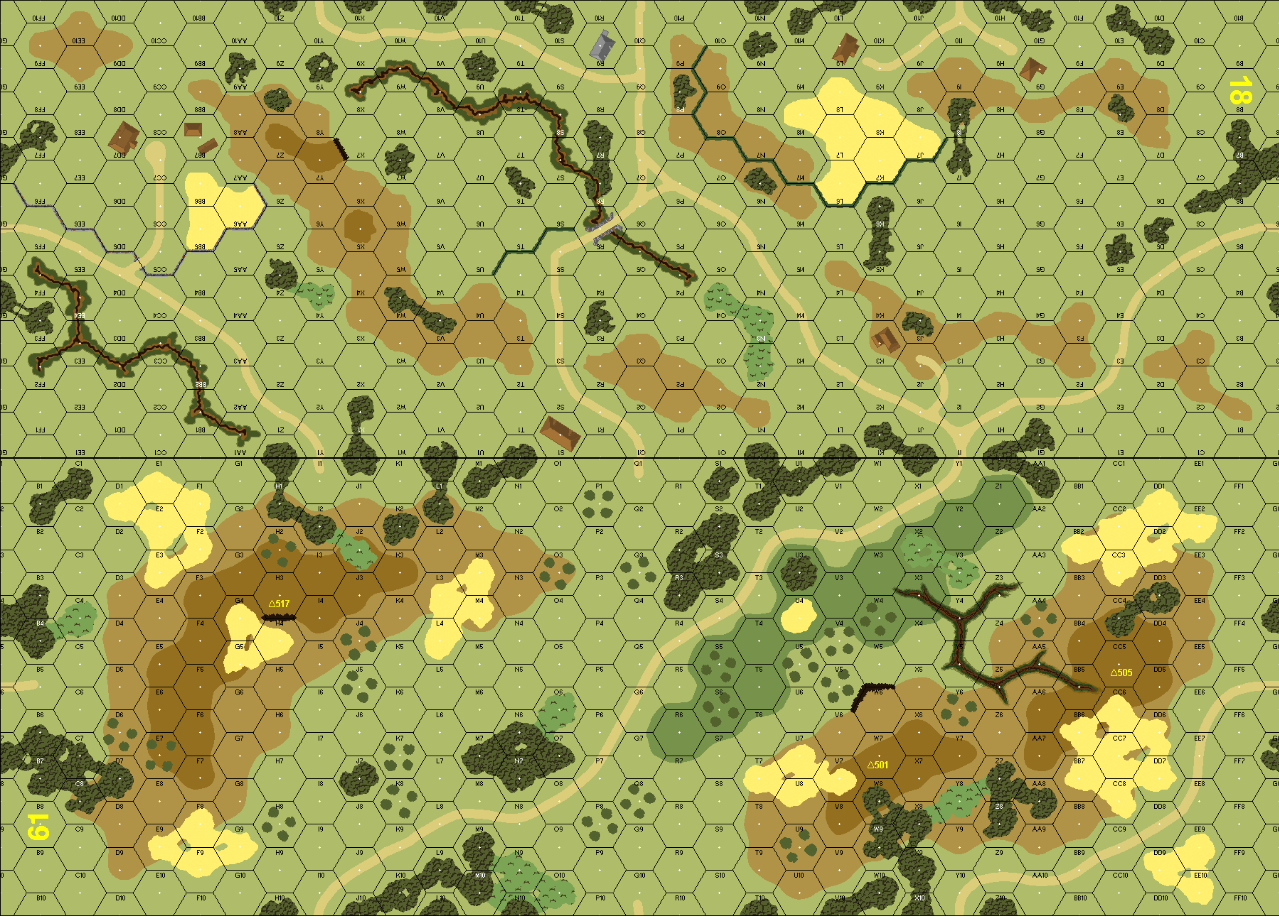 | AFVs: D:5 StuG IIIG x 2 PzKpfw IVF2 x 2 SPW 251/1 |