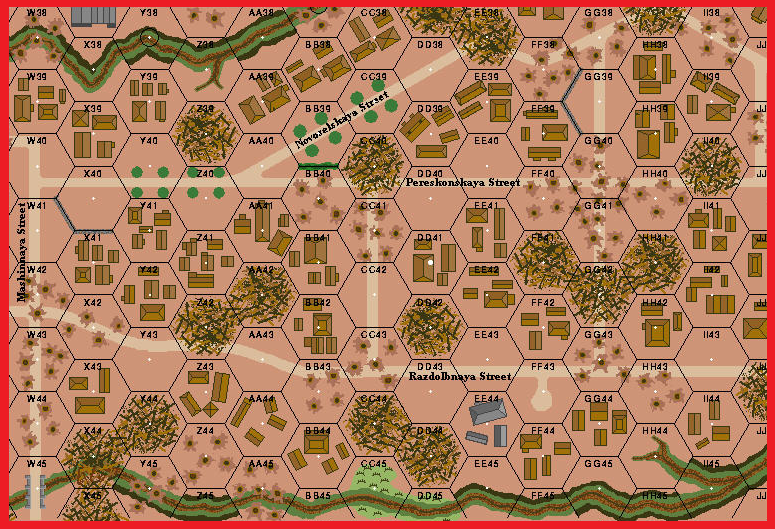 Although desperate to buy time to allow the 45th Division to be ferried across the Volga at night, the Russians had no more reserves. During the 27th, the shattered 118th Rifle Regiment had a bit of luck. To their surprise, they recovered three tanks from the front lines, one with a functional flamethrower. Anxious to buy time and spread their newfound joy, the Russians threw together these tanks and sent this hastily formed armored reserve to counterattack. Supported by artillery and katyusha batteries, the Russians launched their attack in the pre-dawn twilight. . .Attacker: Russian (118th Rifle Regiment and Headquarters, and 62nd Army Staff)