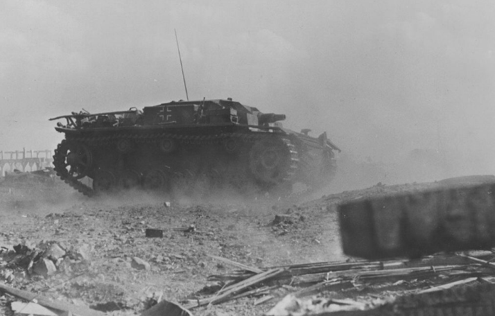 By 0930 the Germans’ first objective, the north-south railroad embankment west of the factory, had been reached. The attack plan then called for a brief interlude to allow fresh troops of the second wave to come up and for continued bombardment of the next objective – the imposing halls of the factory itself. Meanwhile, the bloodied survivors of Guriev’s 39th Guards Rifle Division, tasked with defending those wrecked shops and workstations, dressed their wounds, all the while enduring unhealthy amounts of German high explosives. Suddenly, a few minutes past 1000, piercing whistles announced that the Wehrmacht troops were once again advancing – this time taking their second step.Attacker: German (Infanterie-Regiment 212 and Sturmgeschütz-Abteilung 244)