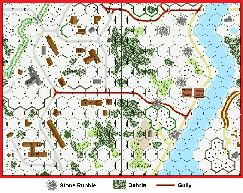 | Misc Rules: | GS (Exc: river is flooded, not frozen). All woods are Debris. A: Ammo Shortage |
