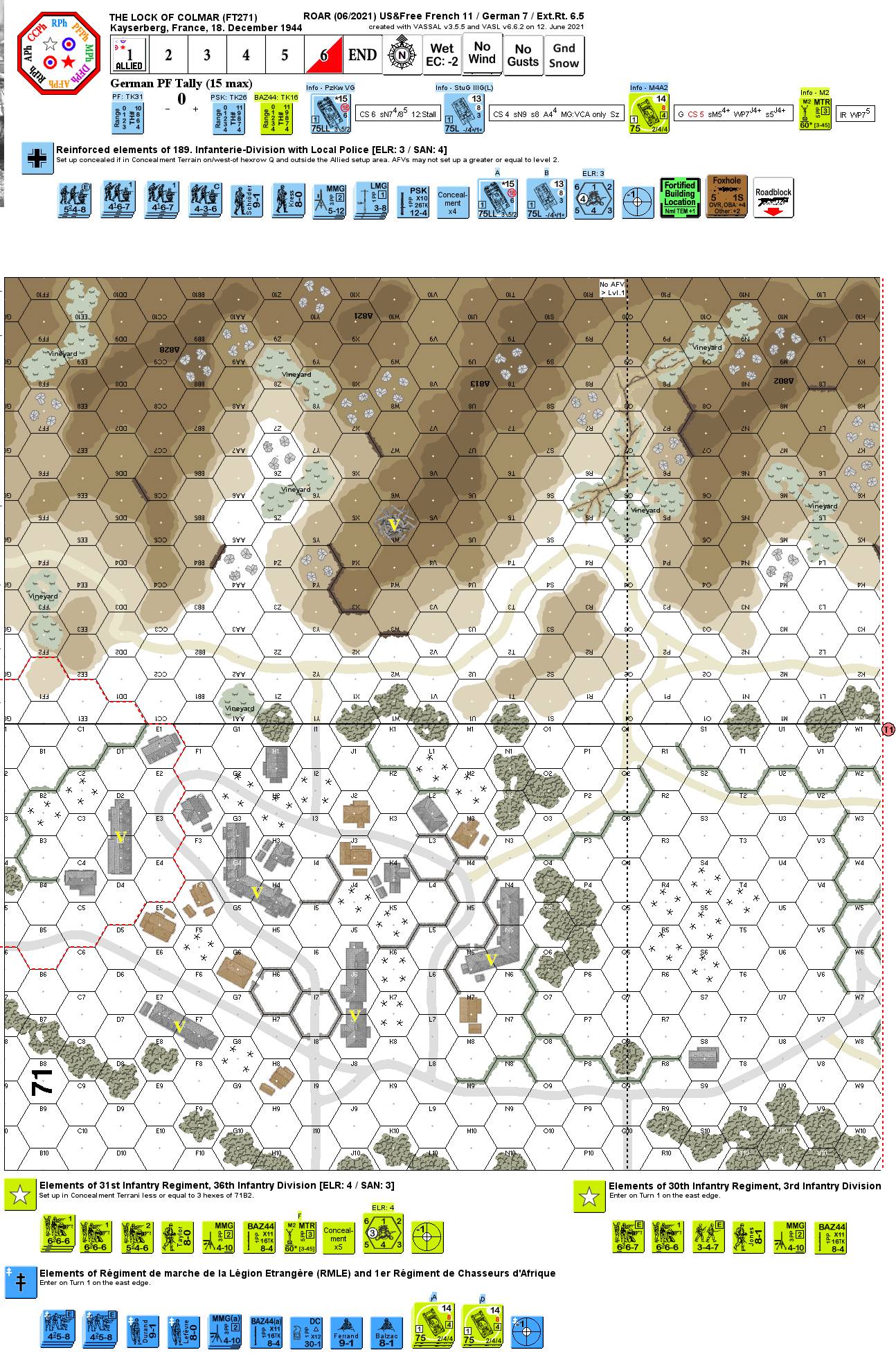 | (FT271 The Lock Of Colmar v662 no VC no SSR no Pics.vsav) | VASL Setup | von Marwitz | 1600 |