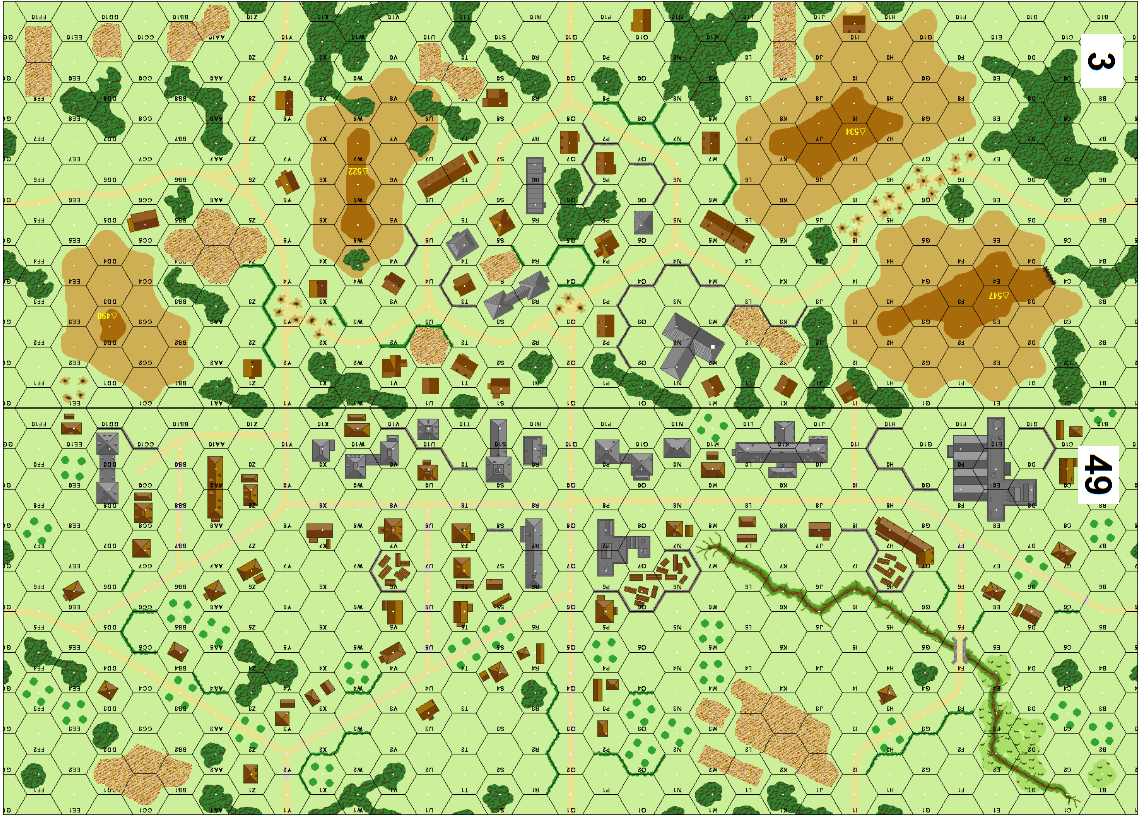 | Misc Rules: | Unpaved roads. D: 6 Minebelts (factor 3) on Bd 3. 3 are N/S, 3 are E/W |