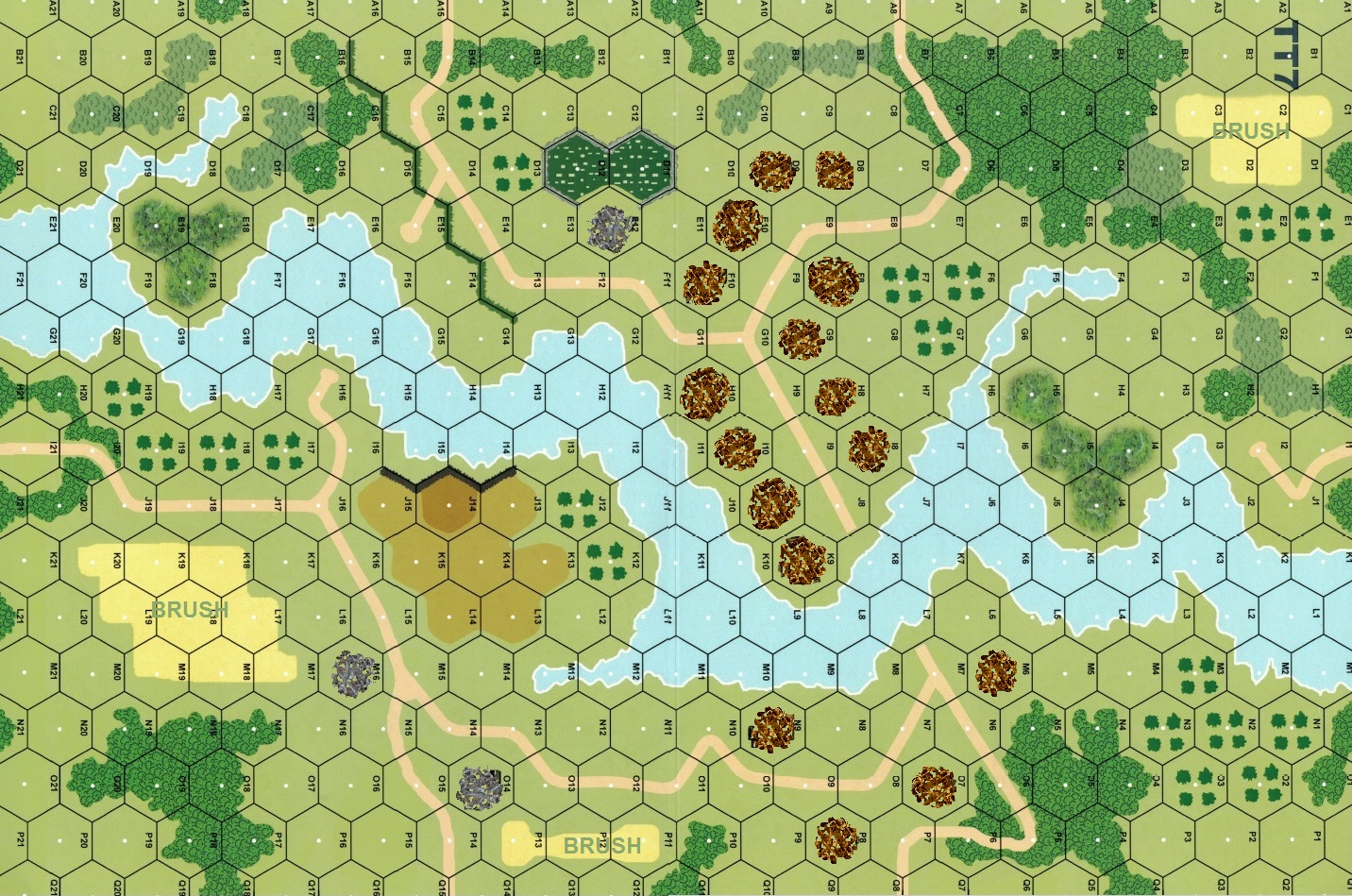 | Misc Rules: | Mud (D8.23), Grain is treated as Brush. All Bldgs: Rubble. D: Cupola is dug-in T-34 M43 tank. |