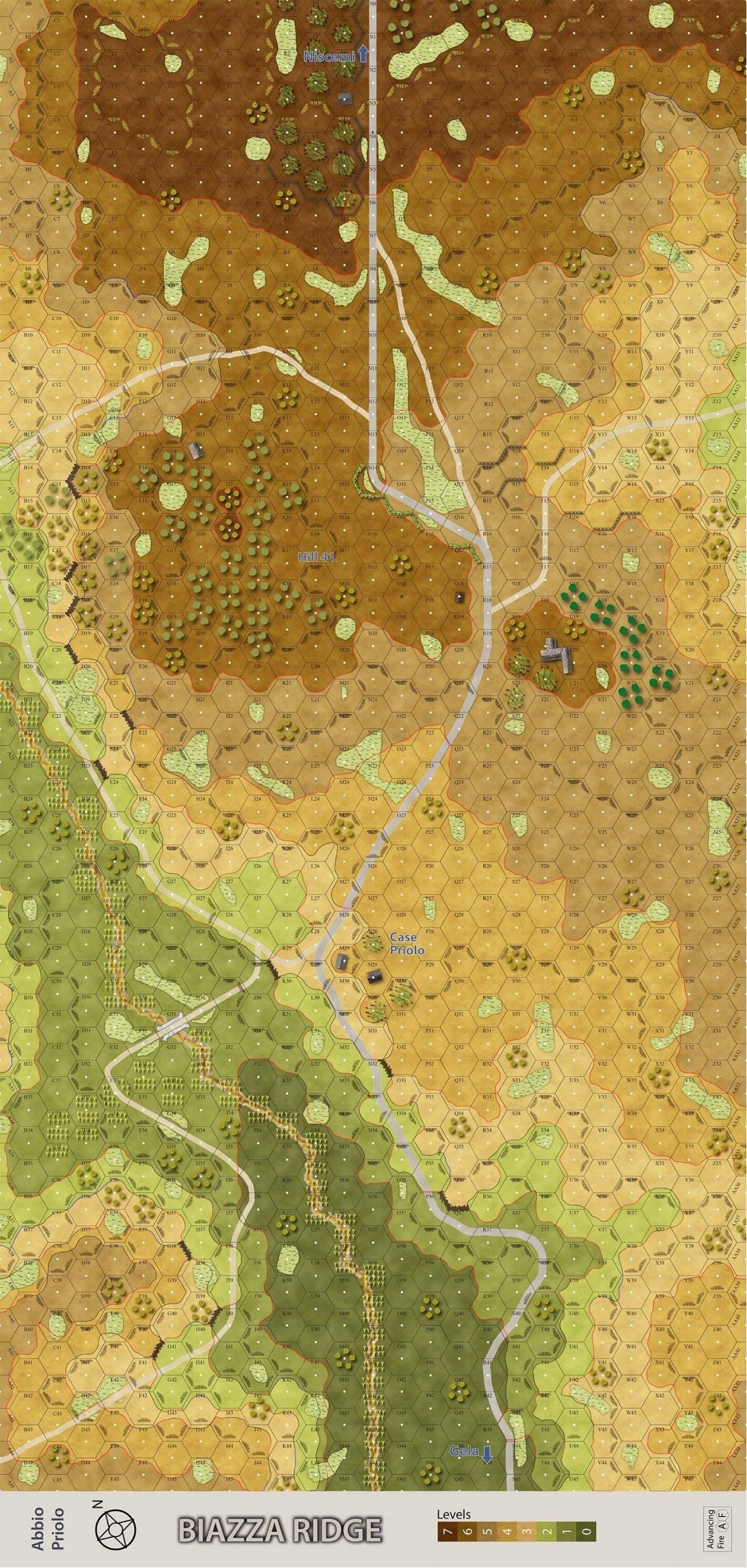 The Americans had sustained a couple of counterattacks with tanks from Hermann Goring Division on a ridge 2 km northeast from the crossroad, which they repulsed easily with help from naval and field artillery. in the first hours of the D+1 day, 1st and 2nd Battalions of the 16 RCT advanced again to the ridge in Abbio Priolo (also named Hill 41) and the buildings in Case Priolo, the 2nd on the left of the road and the 1st on the right. After a brief time they spotted a big column of German troops with tanks coming from Niscemi with the intention to push to retake the crossroad and drive straight to Gela.Attacker: German (Hermann Göring Panzer Division)
