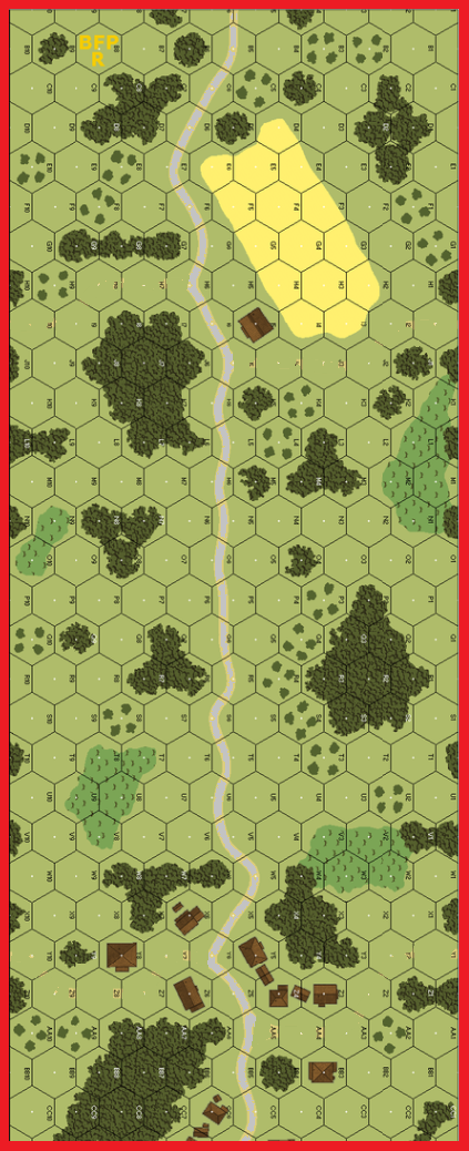 | Misc Rules: | A6-CC5 road is Paved; there are no other roads. D: AFVs may set up Dug-In |