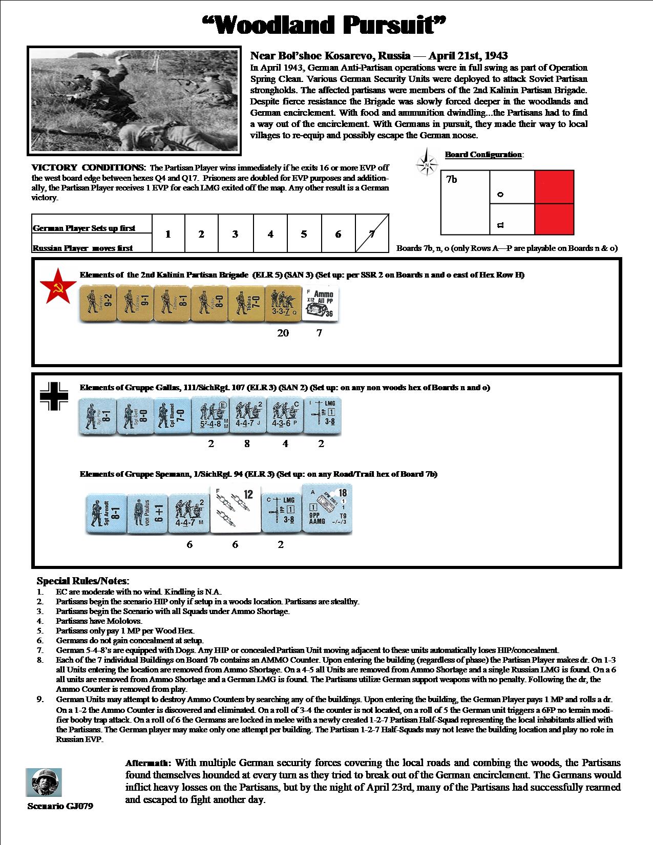 | Misc Rules: | A: Partisans HIP setup in Woods, Stealthy, MOL (A22.6) |