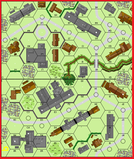 | Misc Rules: | Woods hexes (exc: in gullies) = stone rubble. No orchards or trees along roads. |