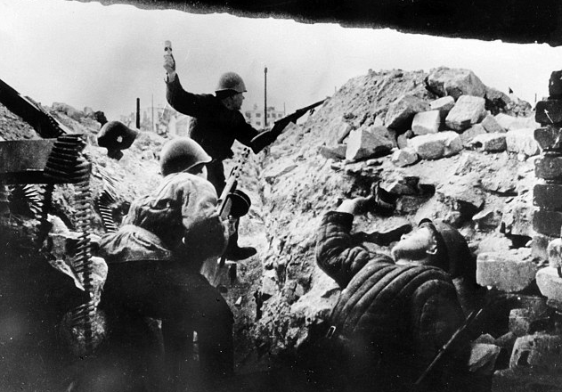 Throughout the grueling month of October, determined and costly German assaults had managed to steadily shrink the Soviet defensive perimeter. But no one man, soldier or commander, could grasp the scope of the confused battle raging in the ruins. One such was Sgt. Esser, now leading the remnants of the 64th Motorcycle Battalion in an assault on the southern corner of the Red Barricade ordnance factory. Across the street lay his company commander and platoon leader, both dead; at his side the last officer was dying. Only sixty men remained from his company. Suddenly Esser went berserk. Leaping to his feet, he screamed “Forward” and charged across the street.Attacker: German (Kradschützen-Bataillon 64 and Grenadier-Regiment 103)