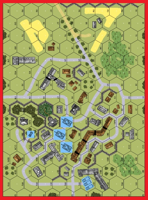 | Misc Rules: | Hedges are Walls. Rooftops in effect. No cellars. Bldg AA7 has Steeple Level 3 |