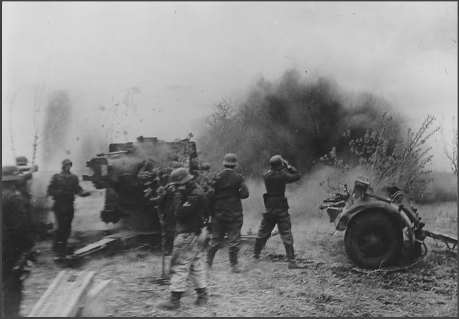 The attack of the 2nd Monmouthshires on Rethem was supported by an artillery firing plan -- codenamed 'Hatton' -- and consisting of a creeping barrage that would move in front of the attack, down the railway line. A smoke screen would wrap it all up, to blind German Ops and direct fire weapons. The artillery would be preceded by Typhoons. B and D Companies of the Monmouthshires were to move forward in a two-pronged attack from the south-west, to have C Company move through. It soon became apparent that the intense preparation had left heavy weapons unscathed -- the unmistakable report of railway Flak and PaK 40 ant-tank fire soon rang out. . .Attacker: British (B & D Companies, 2nd Battallion, Monmouthshire Regiment | B Squadron, 5th Battallion, Royal Tank Regiment)