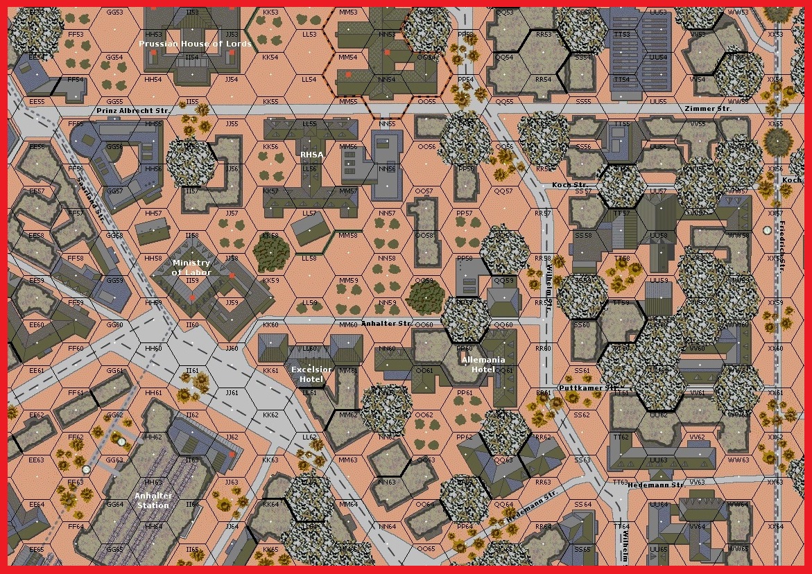 Unable to stop the rising tide of Red Army troops and tanks, the French SS were forced to give up their lines on the Hedemannstrasse and reform on a second line one block north. To cover the retreat, Courturin, a Parisian firefighter in his pre-war life, found a hole in the enemy lines and was able to occupy the basement of a building that the Russian troops had failed to secure. This basement storage room was filled with paper that he soon set ablaze with several hand grenades. As the building was quickly engulfed in flames the Russian troops in the upper levels were forced to abandon their positions to escape the flames. This short respite allowed Fenet to rally his troops and stabilize the line. The stability would be short lived as Russian tanks advanced up the boulevard two abreast and started to blast Fenet's command post with pointblank fire. A lone King Tiger and Frenchmen with panzerfausts returned the fire and the streets erupted with the shock of explosions as more Russian tanks died. Once again the Red Army served up another order of heavy artillery to batter the stubborn defenders. The Russians were able to make small gains at great cost as casualties piled up on both sides and the fighting raged on.Attacker: Russian (5th Shock Army)