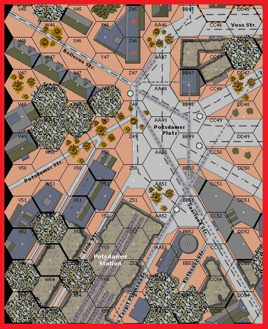 Finally clearing the Potsdam Railroad Station, the 79th Guards Rifle Division reached the Muenchburg Panzer Division's headquarters located in the underground station under the Potsdammer Platz. Guarding the entrances was the crippled King Tiger commanded by Unterscharfuhrer Turk. With its drive train damaged this tank could barely move but the 88mm gun was still able to deal death. Between the fire from Turk's tiger and the headquarters troops firing from the fortified entrances to the station the Red Army was unable to clear the plaza. The SS had set off explosives in the tunnels to block an attack from underground. Not making any progress the 79th halted the attack to re-group. Out of ammo and unable to move Turk and his crew abandoned the tiger and slipped into the rubble. Getting another tiger Turk would again see action during the break-out two days later. With the massive German tank out of action the 79th was able to clear the plaza on May 1st.Attacker: Russian (79th Guards Rifle Division)