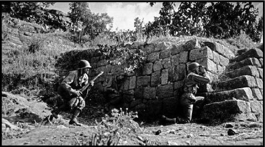 During late July 1943, the Allied 15th Army Group drove the Italian and German forces into Sicily's northeast corner. The Axis fought sporadic delaying actions as they withdrew back to prepared defensive positions. As August began, the U.S. 1st Infantry Division was tasked to take the village of Troina in the center of the Etna Line. Several attempts to assault Troina directly along Highway 120 by the 39th and 16th Infantry Regiment on 1 and 2 August were repulsed by Kampfgruppe Fullreide, 15th Panzergrenadier Division. On 3 August, the 39th Regiment renewed its assault, supported by a flanking movement conducted by the 26th Infantry Regiment from the northwest. One battalion from the 26th Regiment quickly reached its objective, Mount Basilio, where it was joined by a second battalion. German counterattacks cut the battalions off from the rest of the division. On 5 August, the Germans attempted an assault by dismounted panzergrenadiers.Attacker: German (129th Panzergrenadier Regiment, 15 Panzer Grenadier Division)