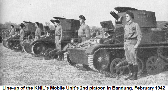 Following successful landings, the Shoji Detachment quickly captured the Kalidjati airfield despite tenacious British resistance, while its headquarters unit, including Colonel Shoji, took the nearby town of Soebang at 0500 on 2 March. While the Shoji men took time to celebrate their success by cooking breakfast and cleaning their equipment, the KNIL Mobile Unit (Mobiele Eenhied) under the command of Captain Wulfhorst, counterattacked with tanks and mechanized infantry. Initially surprised by the tanks of the KNIL 1st Tank Platoon, the Shoji Detachment HQ unit and reserves rallied without losing the town, forcing the Dutch to retreat. The remaining platoons of the Dutch infantry then dismounted and tried to enter the town with the support of the 2nd Tank Platoon.Attacker: Dutch (Mobiele Eenheid)