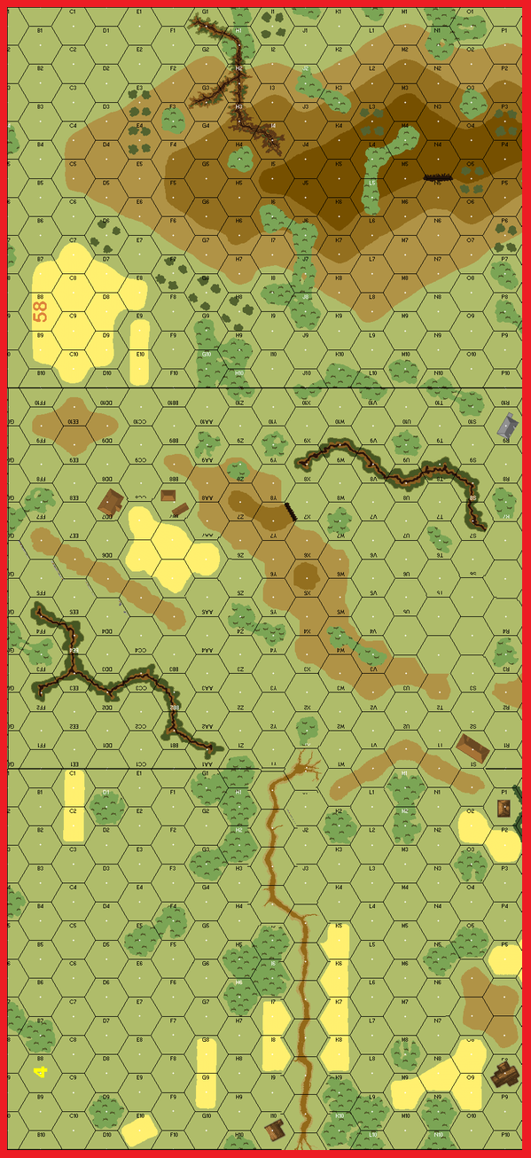 | Misc Rules: | Woods: Brush. No roads. Stream: Dry. D: may use ATMM as if German |