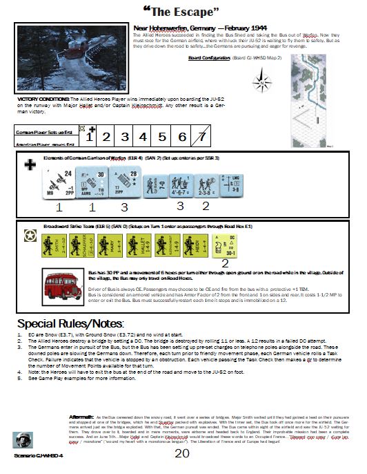 The Allied Heroes succeeded in finding the Bus Shed and taking the Bus out of Werfen. Now they must race for the German airfield, where with luck their JU-52 is waiting to fly them to safety. But as they drive down the road to safety…the Germans are pursuing and eager for revenge.Attacker: Allied (Broadsword Strike Team)